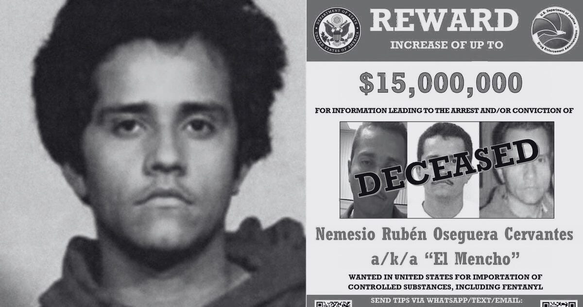 I first got wind of the downfall of El Mencho via my daughter’s 5th grade WhatsApp group chat on Sunday morning. One of the mothers advised us of a “critical situation” in some cities because “an important capo” had been captured. I expected to see that a regional crime boss had been arrested but then…holy shit.